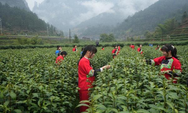 隨著石遠(yuǎn)定主席的宣布,茶農(nóng)們和茶仙子學(xué)生們迅速投入到緊張的采摘工作中。他們的手指在嫩綠的茶葉間輕快地跳躍,忙碌的身影構(gòu)成了一幅美麗的春日畫卷。